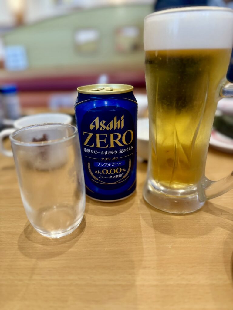 運転手の夫から「飲んでいいよ」と言ってもらえたのでお言葉に甘えていただきました。夫はノンアルビールでかんぱい♪