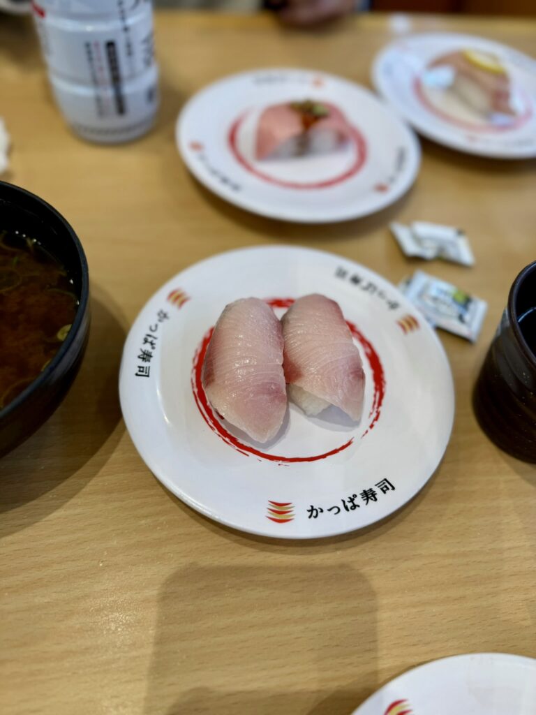 本当はローカルチェーンのお寿司屋さんに行きたかったのですが、周辺には見当たらず…。時間もまだ早かったこともありやっているお店も少なく、今回は近くのかっぱ寿司に立ち寄ることにしました。
