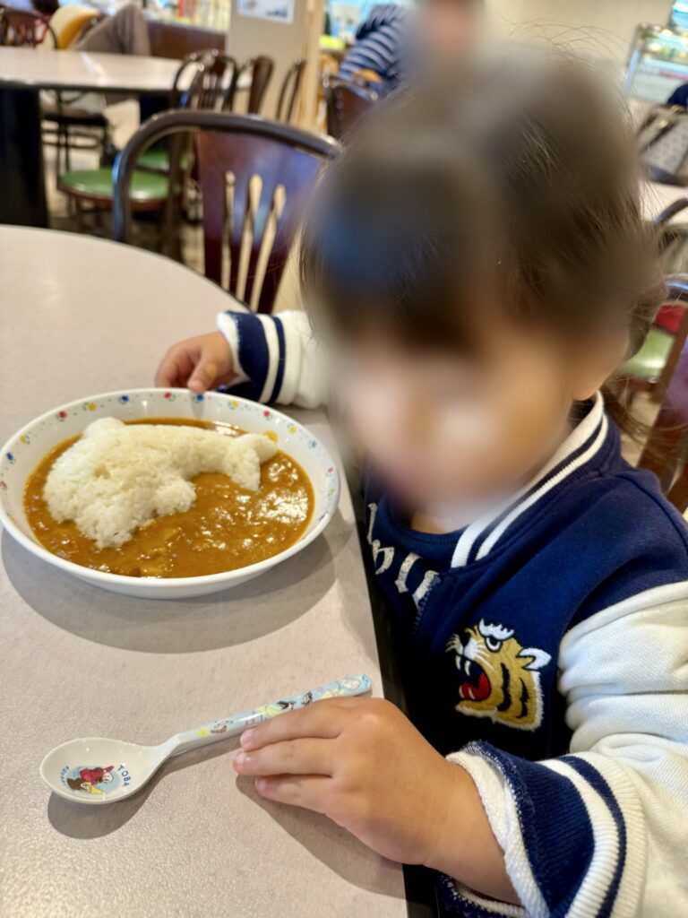 朝食ビュッフェをあまり食べなかった娘が途中でお腹が空いてしまい、館内のレストランでカレーと軽食を食べてひと休み。