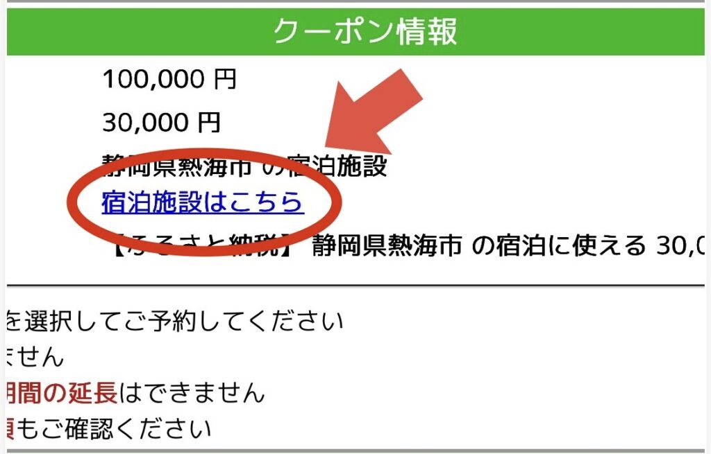 旅行券が使える対象施設は、楽天ふるさと納税のサイト内にあるリンク、または各自治体の公式サイト(HP)を検索して確認することができます。