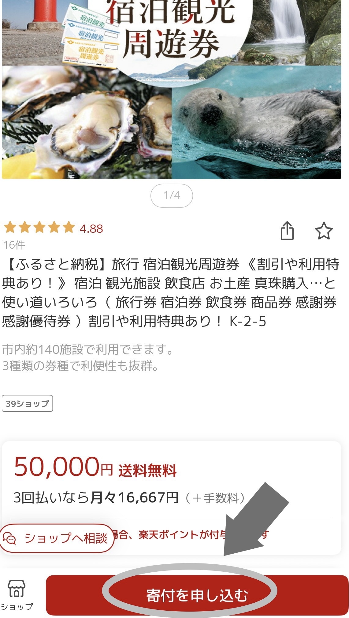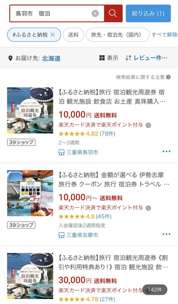 ステップ① 楽天ふるさと納税で旅行券を探して寄付する方法