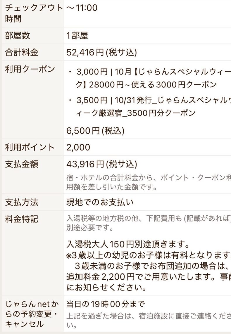 じゃらんで発行されたクーポンやポイントも利用できました!