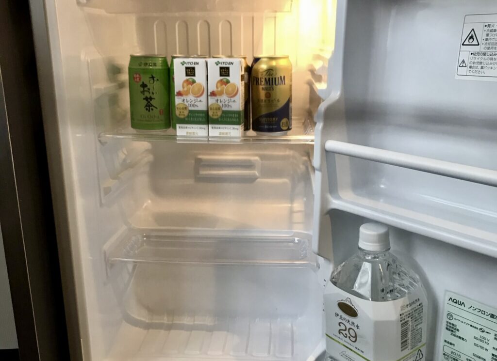 2025年4月26日より、客室内の無料冷蔵庫ドリンクサービスは終了しています。