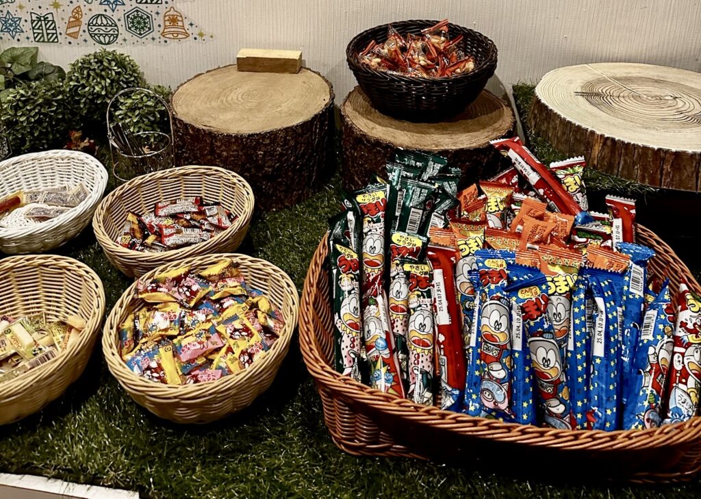 フロント横にも各種アメニティが用意されています。好きなアメニティを1人3点まで選ぶことができます。