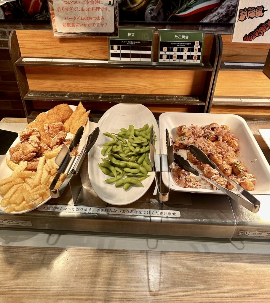 ポテトにからあげ、たこやき、枝豆など、まるで縁日のようなラインナップが楽しめます!