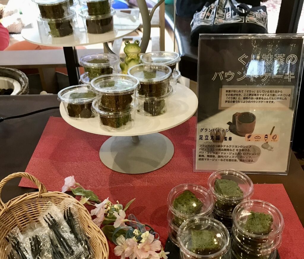 伊豆で親しまれている「ぐり茶」のパウンドケーキも用意されていました。アイスやケーキに子どもは大喜び!