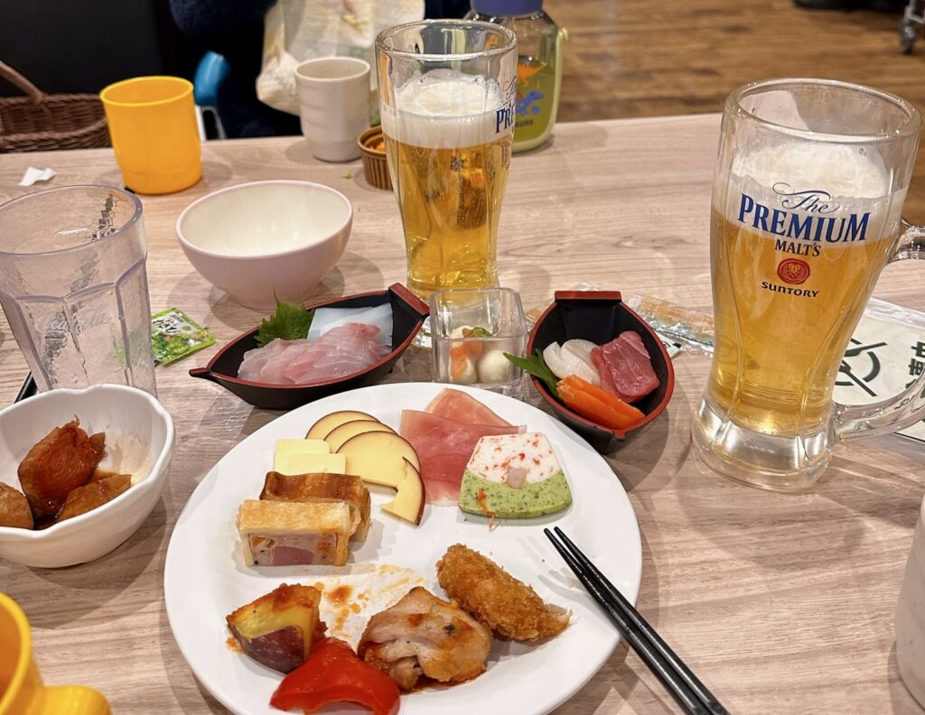 ビールやワインと合わせて、ちょっと大人な時間も楽しめます。生ハムやチーズなど、バルのようなおしゃれなおつまみもありました♪