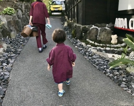 息子は館内着を上着のみ着用しました。